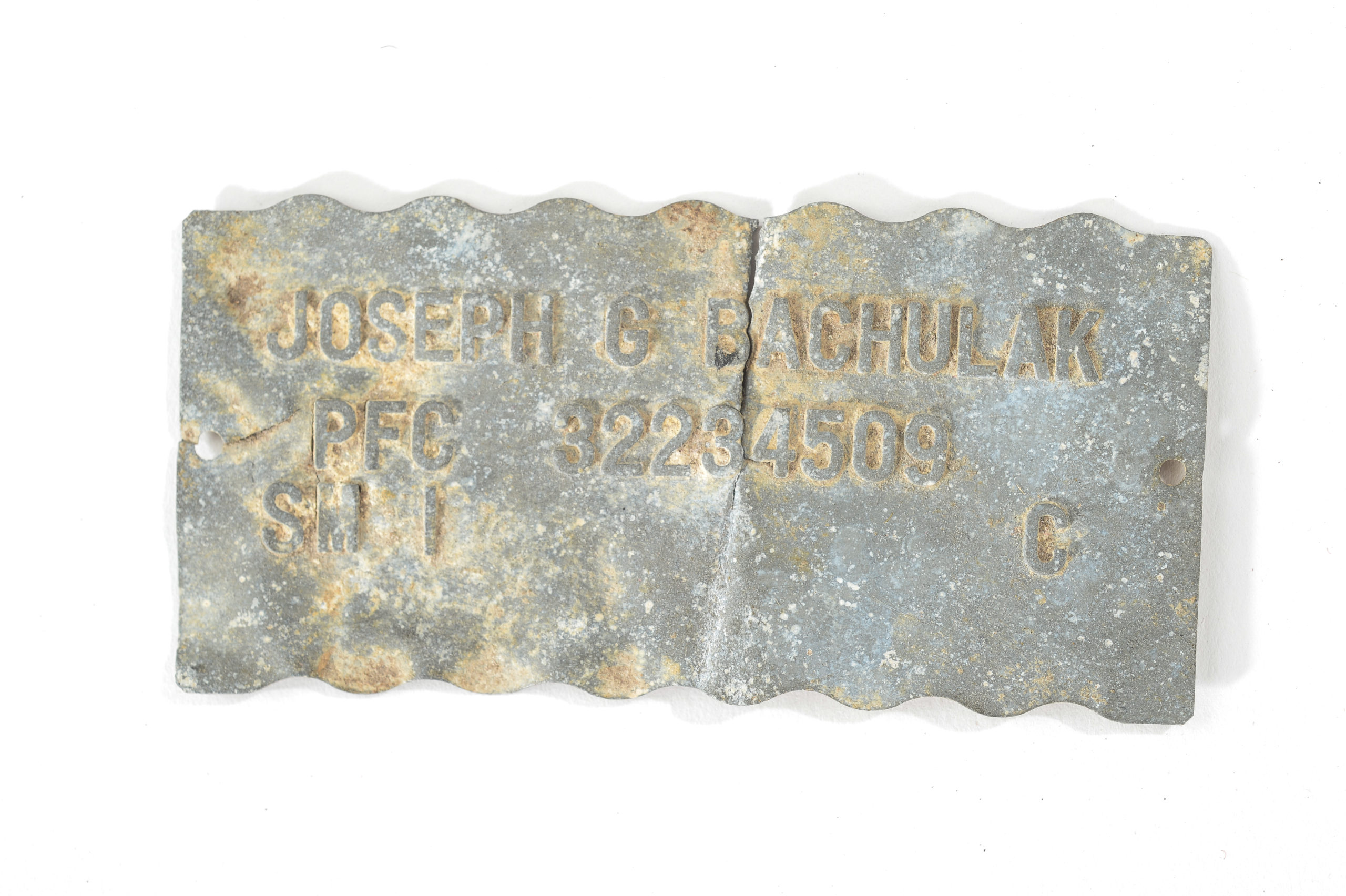 Plaque apposée sur la tombe du Pfc Joseph G. Bachulak n° matricule 32234509 du 502nd PIR de la 101st Airborne. Tué au combat le 15 juin 1944 et enterré au cimetière provisoire n°1 de Sainte-Mère-Eglise.