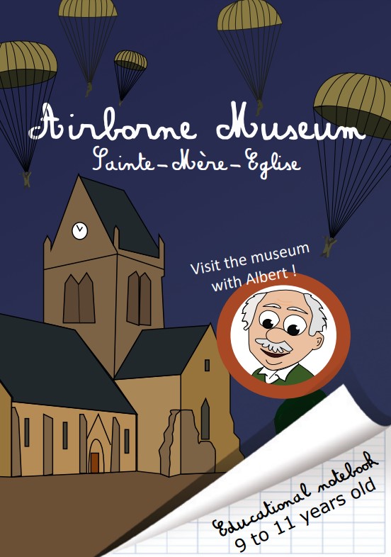Inside you’ll find stories to tell you friends or at school you’ll discover a whole bunch of things and you’ll be able to enjoy yourself with little games such as coloring, drawing, quizzing and cross words. Once you’re at the museum exit this little book will be a great souvenir of your visit to the Airborne Museum for and of Sainte-Mère-Eglise.