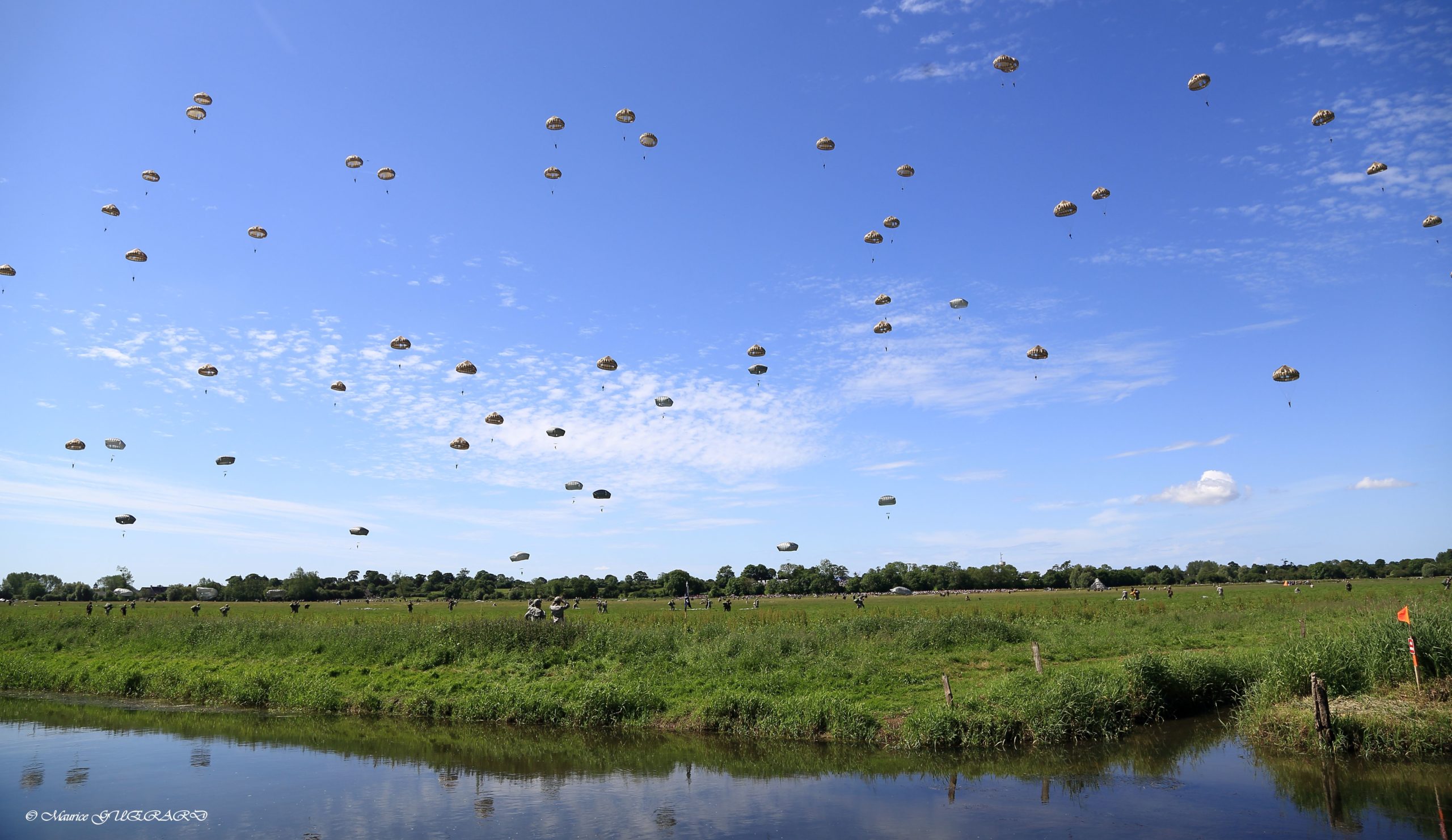 Sainte-Mère-Église n’a jamais oublié que la Liberté est venue du ciel et que ce fut au prix d’un lourd tribut payé par les parachutistes des 82ème et 101ème divisions aéroportées américaines ainsi que par les hommes arrivés en planeur le Jour J. Des milliers d’entre eux ont été enterrés dans trois cimetières provisoires de 1944 à 1948 aux alentours de Sainte-Mère-Eglise, cimetières qui ont compté près de 15 000 tombes. Depuis cette date, la mémoire collective a intégré ce souvenir de génération en génération. Il suffit de se promener dans les rues et les chemins de campagne pour voir combien ce souvenir a marqué pour l’éternité notre vie.