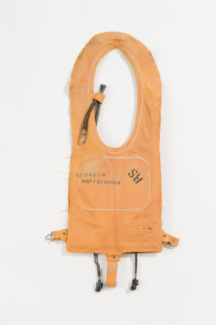 These life jackets made of rubber canvas are used by the US Air Force but also the entirety of the US airborne troops. This B4 model was made by air Cruisers Inc. in september 1943. It bears the inspection stamps of the 18/02/1944 and the typical “RS” stencil of the 506th PIR, 101st Airborne.