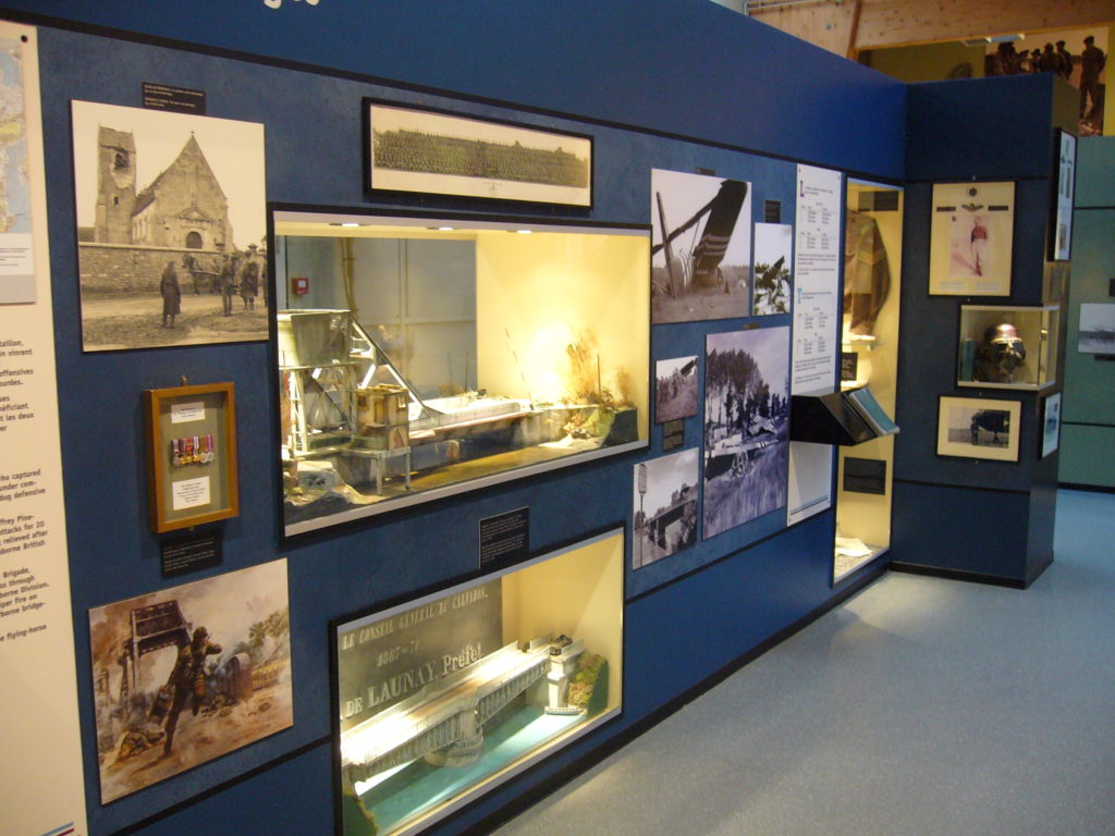 Le pont de Bénouville d’origine, rebaptisé Pegasus Bridge est exposé dans le parc du musée ainsi qu’un pont Bailey, half track, canons et la réplique grandeur nature du planeur Horsa.